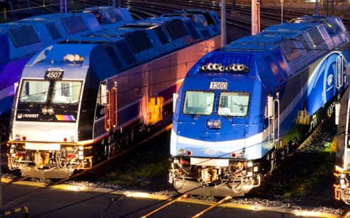 Trem movido por eletricidade e diesel usado pelo transporte urbano de Nova Jersey