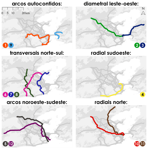 O maior esforço desde as últimas atualizações foi dar maior consistência aos argumentos do projeto para bater de frente com o planejamento oficial, e, também, para fazer propostas mais sérias. Já em 2014, foram concebidos alguns critérios para avaliar, sistematicamente, projetos que envolvessem mobilidade urbana, inclusive a própria rede que estava sendo pensada para publicar aqui. Naquela época, eu tinha esperanças de convocar um interesse coletivo para refinar tal grupo de critérios em um produto cada vez melhor, que sobretudo pudesse ser traduzido em críticas e atualizações da rede que estava publicada aqui. Até surgiu, bem rápido, um sistema de vinte diretrizes capazes de conduzir qualquer plano de transportes, mas logo percebi que daria um esforço absurdo terminar o que foi proposto. Por mais que a gente possa apontar um monte de falhas no resultado dos planos feitos pelo governo, não é à toa que os relatórios são tomos cheios de detalhes, com textos enormes, orçamentos, projeções e cronogramas, e demandem tanto dinheiro, tempo, recursos computacionais e equipes treinadas.